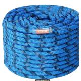 VEVOR 12.7mm Static Climbing Rope, 38M(125ft) Outdoor Rock Climbing Rope 32KN Breaking Tension, Fiber Rope with Steel Snap Hooks for Escape, Rappelling, Fire Rescue, Blue