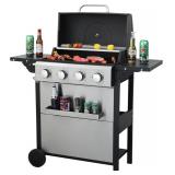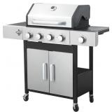 4-Burner Propane Gas BBQ Grill with Side Burner, 46790 BTU, Stainless Steel Outdoor Grill, Enameled Cast Iron Cooking Grates, Ideal Camping Grill for Outdoor Barbecue and Grilling