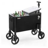 VINGLI 80 Quart Wagon Rolling Cooler Ice Chest, w/Long Handle and 10" Wheels, Portable Beach Patio Party Bar Cold Drink Beverage, Outdoor Park Cart on Wheels