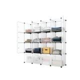 Winado 16 Cubes Storage Closet Organizer,Bookcase Bookshelf Wardrobe for Bedroom Living Room with Doors,Plastic White