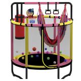 Mini Round Trampoline for Kids with Basketball Hoop, SEGMART 55'' Indoor Outdoor Toddler Trampoline with Enclosure Net, Swing, Sandbag, Ring, Ocean Balls, Small Trampoline Gift for Boys Girls, Green
