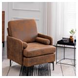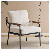 Ktaxon Mid Century Modern Accent Chair, Linen Fabric Armchair, High Back Single Sofa with Solid Wood Frame Beige