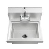 Vingli Commercial Stainless Steel Restaurant Kitchen Sink Wall Mount Utility Sink with Faucet & Sidesplashes