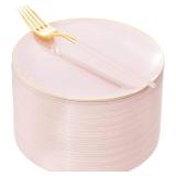 I00000 72PCS Pink Plastic Dessert Plates with Disposable Forks, Premium Pink Cake Plates, Fancy Apetizer Plate with Gold Rims Perfect for Party