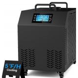 - Ice Baths and Hot Tubs: Integrated ice plunge chiller with built-in circulating water pump, it uses an automatic thermostat control system and an R410A non-Freon refrigerant to cool as low as 37 degrees F and heat up to 107 degrees F. The 1.0 hp is powerful and cools quickly (cooling 132 gallons of water at about 6°F/hour). Operates at a low noise, only 45 dB, so you can use it indoors without worrying