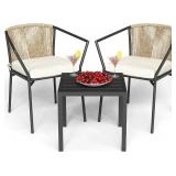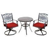(55) Hanover Traditions 3-Piece Bistro Set with 2 Swivel Rocker Chairs, Plush Red Cushions, and 32" Cast-Top Patio Table, Space-Saving Outdoor Patio Set for Porch, Deck, Patio, and Backyard