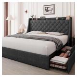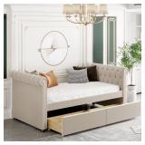 Upholstered Twin Daybed with Storage, Frame 2 Drawers Underneath, Tufted Sofa Bed Slat Support Compatible with Bedroom,Living Room, Light Grey (with Drawers),Sofa
