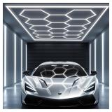 Hexagon Lights: Higher Brightness 900W, 96,200 LM, 6,500K Hexagon Garage Lights with Rectangle Frame, Hexagon LED Lights 14 Grid for Garage, Shopping Mall, Workshop