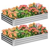 2PCS 8x4x1FT Galvanized Raised Garden Bed,Planter Raised Beds-Metal Garden Box,Large Plant for Outdoor Planting, Vegetables Bed,Flower,Herb-Sliver