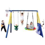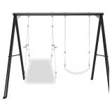 - [Enjoy Swing All Weather] Made from heavy duty weather-resistant steel tubes of powder-coated paint, the swing stand can be applied to all weather. To make your family have great fun, you can install our swing frame indoor, outdoor in the backyard, garden, lawn and playground etc.