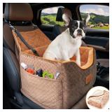 Memory Foam Dog Booster Seat - Washable Cover, Elevated, Anti-Slip, 35lbs Max, Seat Belt, Storage Pocket, Dog Blanket