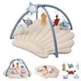 - Soft, machine-washable playmat features loops to attach toys