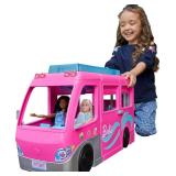 - Hit the road to adventure with the Barbie Dream Camper featuring an epic slide, 7 play areas and everything imaginations need to play out the ultimate camping trip.