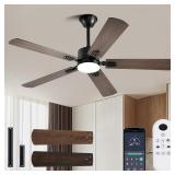 56inch Ceiling Fans with Lights and Remote/App Control, DC Reversible Motor, Noiseless, Dimmable, Low Profile Modern Ceiling Fan for Bedroom Indoor/Outdoor Use๏ผBrown๏ผ