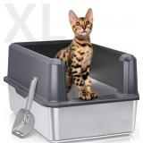 Enclosed Stainless Steel Cat Litter Box with Lid, XL Extra Large Litter Box for Big Cats, Metal Litter Pan High Sided, Never Absorbs Odors, Anti-Urine Leakage, Easy Cleaning, Include Scoop