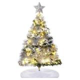 23.6'' Mini Christmas Tree with String Light Small Tabletop Artificial Christmas Tree with Treetop Star Ornament Balls Tree Skirt Tinsel Wreath for Christmas Mantel DIY Decorations(Silver)