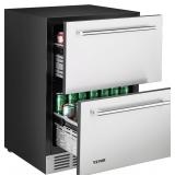 (43). VEVOR 24 Inch Under Counter Drawer Refrigerator, Stainless Steel Dual Drawer Fridge with Temperature Control, Outdoor Refrigerator with Powerful Compressor & LED Display, Fit for Home, Office, etc.