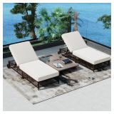 (39). Merax Outdoor Lounge Chair Set of 2, Patio Chaise Lounge with 5-Position Backrest, Rattan Outdoor Lounge Chair with Cushion and Wheels for Poolside, Backyard, Garden,Brown+Beige