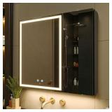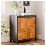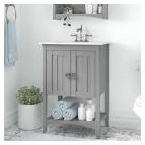 Vanity includes a lower shelf and 2 door storage cabinet for organizing toiletries, cleaning supplies and more