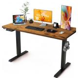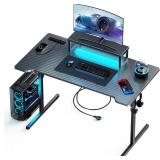 Small Gaming Desk with LED Lights & Power Outlets, 55 Inch Computer Desk with Monitor Stand, PC Gaming Table with Carbon Fiber, Black