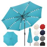 Joyberri trampoline for kids with trampoline net, add-on LED lights, and sprinklers, 8-ft, Blue