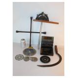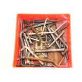 CATALOG TEXT BELOW: 1 - Kubota 3 Cylinder Diesel Tractor & Implements Model B 6100 HST. We have the keys and implements you see in the pictures are included with it. I believe they are: back blade, front blade, rock rake, 3 pts. hitch and PTO. Heirs to this estate have told me it ran and was being used up until their father became ill which was several years ago. Since then, the tractor has been sitting unused. The owner was very organized and maintained all his equipment. I have a file on the tractor which indicates you should use Rotella Oil, 15W40Wt which is available at Walmart. Oil filter and air filter from O'Reilly's. He also has a paragragh explaining how to start the tractor properly. Tractor was purchased used in February of 2012. I don't know the exact year but we do know: he Kubota B6100HST is a sub-compact utility tractor produced from 1978 to 1984, offering a 14 horsepower engine. It's known for its hydrostatic transmission (HST) and is a popular choice for smaller jobs and landscaping. Here's a more detailed breakdown: HST Transmission: The B6100HST model features a hydrostatic transmission, which provides smooth and variable speed control using a pedal for forward and reverse movement. Variants: The B6100 also comes in 2WD (B6100E) and 4WD (B6100D) options, as well as the HST model. Engine: The engine is a 14 horsepower engine, suitable for tasks like lawn mowing, light tillage, and landscaping. Parts: Parts for the B6100HST are available from various sources, including Kubota and online retailers like eBay. Applications: The B6100HST is well-suited for tasks like yard maintenance, light landscaping, and small-scale farming. The tractor is at the residence in Branson West, MIssouri. Winner is responsible to pick up and haul at their own expense. Exact address will be provided to the winner after the auction has finished and payment is made. Sold as is, where is with no warranties expressed or implied. 2 - Solid Oak Partner Desk by Furniture in the Raw Furniture in the Raw is from Texas and they do not use any fiber board. Their products are solid wood. The gorgeous tufted desk chairs are NOT included in this lot but they are available in another lot individually. 3 - "Dog Palace" Insulated Dog House No 1 4 - "Dog Palace" Insulated Dog House No 2 5 - Charcoal BBQ Grill 6 - 4 Piece Concrete Water Fountain 7 - Char-Broil Stainless BBQ Grill with Propane Tank 8 - Outdoor Chairs 9 - Garden Hose No 1 10 - Garden Hose No 2 11 - Agri Fab Yard Leaf Sweeper with Bag 12 - Used Full Motion Wall Mount for Televisions 13 - Clothing Rack 14 - Bleacher Stadium Seat 15 - Wooden Flower Box 16 - NEW Full Motion Flat Panel TV Mount 17 - Pilates Power GYM Pro 18 - Large Storage Ottoman 19 - Sofa Table 20 - Bar Stool 21 - 3 Stacking Banquet Chairs 22 - End Table 23 - French Chair 24 - Oak Chair 25 - Queen Ann Bench 26 - Antique Drop Leaf Table 27 - Round Table with Drawer 28 - Gorgeous Wood Table with Bird Carving 29 - Antique Rosewood Needlepoint Chair 30 - 2 Caned Bottom Wood Church Chairs 31 - Antique Rocking Chair 32 - Child's Horse and Buggy 33 - Wood Hall Tree Coat Rack 34 - Wood Drop Leaf Table 35 - Wicker Trunk with Brass Accents 36 - Antique Carved Chinese Yokeback Chair 37 - Pair of Office Desk Chairs 38 - New in Box Craftsman 9 Inch Drill Press 39 - Antique Goodrich Treddle Sewing Machine 40 - Oak Rolling Desk Chair 41 - Brass and Wood Bird Cage 42 - Schumacher Battery Charger & Starter 43 - Air Compressor 44 - Heavy Blacksmith's Anvil 45 - Duracraft Bench Grinder 46 - Mario1 C112 5 Speed Drill Press w/Stand & Cart 47 - Outdoor Chair 48 - Equipment Table Base 49 - Electric Lakewood Heater 50 - Aviation Parts Cabinet 51 - Oval Wall Mirror 52 - Supreme Toning Tower 53 - Floor Jack and Electrical Cord 54 - HUGE Homak Professional Tool Box with Stereo 55 - Rockwell/Delta Table Saw 56 - Cabinet with Swivel Top (no back) 57 - Vintage Glass Table Lamps They need new shades. 58 - Mid Century Drexel Mediterranean Bar Cabinet 59 - 2 White Ottomans 60 - Pick Up is on Tuesday, June 10th 9am to 4pm Ozark 61 - Large Tall Dresser Cabinet by No1 62 - Large Tall Dresser Cabinet by No 2 150 - Vintage Christmas Ornaments and More 151 - Wine Marker Christmas Tree 152 - Assorted Icicle and Snowflake Ornaments 153 - 2 Boxes of Hand Decorated Ornaments 154 - Vintage Christmas Ornaments 155 - Lot of Assorted Vintage Toy Cars and Trucks 156 - Assorted Toy Cars and trucks 157 - Vintage Chrtistmas Avon Bottles and More 158 - Goebel Christmas Plates 159 - Walt Disney Character Tous & Cars & a Train 160 - Black Americana Christmas Ornaments 161 - Christmas Ornaments 162 - Assorted Advertising Glasses, Mug & Shot Glasses 163 - Lot of Coffee Cups, Beer Mugs, Shaving & More 164 - Lot of Shot Glasses 165 - Industrial Dolly or Hand Truck 166 - Red Dolly 167 - Toy Cars 168 - Model Train Parts 169 - Set of Books 170 - Vintage Metal Bread Box 171 - Basketball Play Makers Bobble Heads & Cards Byron Russell and Latrell Sprewell 172 - Vintage Baseball Cans from Royal Crown RC Cola 173 - Assorted old World War II Letters with Old Stamps 174 - Vintage Christmas Pixie and More 175 - Vintage Christmas Ornaments 176 - Vintage Christmas Ornaments 177 - Vintage Figural Christmas Lights WOW 178 - Vintage Figural Christmas Lights 179 - Starting Lineup Patrick Roy Pro Action Hockey 180 - European Glass Mickey Mouse and Disney Mickey 181 - Figural Christas Lights 182 - Vintage Santa Claus Figural Christmas Lights 183 - Vintage Christmas Carolers Candles 184 - Vintage Chistmas Lights 185 - Vintage Santa Claus Miniature Mugs 186 - Christmas Ornaments 187 - Christmas Ornaments 188 - Vuintage Metal Christmas Candy Containers 189 - 4 Boxes-Catepillar Big Equipment Collector Cards 190 - Hockey Top Players Lithos 191 - The Official Homers-Baseball Cookies 192 - Dale Earnhardt 3 -Case Pocket Knife & Wallet 193 - Hockey One on One ---2 Boxes 194 - Pittsburgh State Gorillas Collector Gold Football 195 - 1993 Team Set Cards Chrifs Upper Deck J