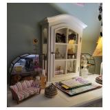 Also a queen bed w/pillow top, chests, nightstands, a dining table w/5 chairs, chaise lounge, 2 bistro sets, chairs, animal rescue supplies, 4 large bird cages, Singer 66-16 sewing machine in cabinet, huge cast iron wood or coal burning stove (never used), antique game table, child's school desk, 6 curio cabinets, 3 display cases, collector plates, kneehole desk, 2 jewelry armoires, bookcases, books, Sound Design stereo, LP albums, 45 records, ladies clothing & purses, file cabinets, linens, craft supplies & yarn, house plants & lots of wonderful Christmas.