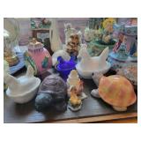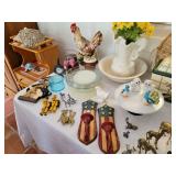 Collections, collections, collections of: clocks (over 50), owls, roosters, hens, cookie jars, frogs, turtles, eggs, Beanie Babies, angels, cats, dogs, giraffes, squirrels, pigs, crocks, music boxes, puzzles, elephants, Harmony Kingdom, Pot Bellys, Charming Tails, Anna Lee dolls, flamingos, costume jewelry & more.
