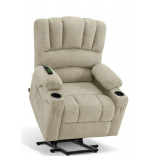 (24) MCombo Electric Power Lift Recliner Chair with Massage and Heat for Elderly, Extended Footrest, Hand Remote Control, Cup Holders, USB Ports, 2 Side Pockets, Fabric 7095 Beige