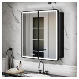 (125) 30x32 Lighted Medicine Cabinet with Mirror, Sand Black Frame,3 Colors Temper dimmable,led Medicine Cabinet with Mirror defog,stepless dimming,Surface or Recessed Mount,Door Wide Open