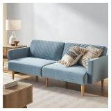 ***Incomplete***mopio 76.8" Futon Sofa Bed, Small Couch, Sleeper, Loveseat, Mid Century Modern Futon Couch, Sofa Cama, Couches for Living Room (Sky Blue Premium Velvet)