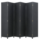 (118) Room Divider Wood Screen 6 Panel Folding Portable Partition Screen Wood Mesh Woven Design Room Screen Divider Screen Wood for Home Office (Black)