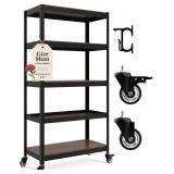 HOMEDANT House 5-Tier Metal Rolling Cart Shelf Rack Casters Heavy Duty Laminated Wheel Shelving Unit Adjustable Utility Storage Shelves Organizer Shelf Kitchen Garage 36.2" W x 16.5" D x 69.5" H 1Pack