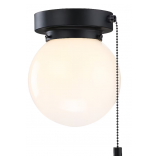 Matte black finish flush mount with pull chain switch. White glass shade creates a brilliant effect. One 60-watt medium base bulb required (not included)