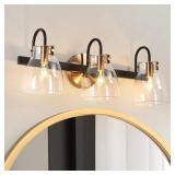 Uolfin Modern Bathroom Vanity Light, 3-Light Gold and Black Wall Sconce with Clear Glass Shades