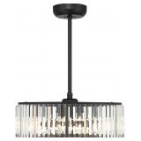 Lovers of glamorous style will adore this Savoy House Janus 6-light Fan D'Lier. The lights sparkle from behind slim, sleek pieces of faceted clear crystal that pop nicely against the Matte Black finish. Janus uses an efficient DC motor, includes six standard size dimmable LED bulbs of 8 watts per bulb and has a handheld remote control for extra convenience. It is 23" in width and 10" in height. Comes with a 4" downrod and an 18" downrod. Fan D'Liers are a Savoy House exclusive that combines the best of ceiling fans with the best of chandeliers in one fabulously fashionable fixture. These custom designs are inspired by high-end designer styles and take top trends to a whole new level.