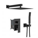 1-Spray pattern with 2.5 GPM 10 in. wall mount rain fixed shower square head. The single handle design can adjust the water flow and water temperature simply and easily. The 10 in. top spray can enjoy the rain shower all over the body and wash away the fatigue of a day's work.