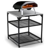 - STYLISH: A stylish outdoor cooking table, made of robust powder-coated carbon steel and two height- adjustable shelves for keeping ingredients and pizza dough at the ready.