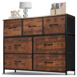 Dresser for Bedroom, 7 Storage Drawers, Anti-Tip Wide Fabric Closet Chests Organizer Tower Furniture, TV Stand for TV up to 45 inch with Wooden Top Metal Frame (Rust)