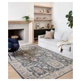 Loloi Teagan Collection 6'-7" x 9'-2" Area Rug in Denim/Pebble - Large, Soft Neutral Rug, High-Traffic for Living Room, Bedroom, Home Office, Dining Area
