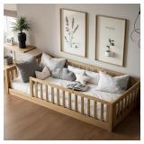 Signature Design by Ashley Wooden Mattress Support Bunkie Board Roll Slat with Nylon Cord, King, Beige