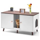 Litter Box Enclosure for 2 Cats, Double Hidden Litter Box Cabinet Furniture with Scratching Pad, Indoor Wood End Table Side Table Cat Washroom, White