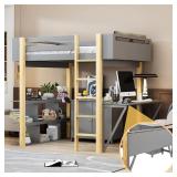 (163). Loft Bed with Built-in Storage Cabinet and Cubes, Wooden Bed Frame with Foldable Desk and Full-length Guardrail for Bedroom,No Box Spring Needed (Grey, Full)