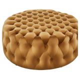 Modway Amour Modern Button Tufted Round Velvet Ottoman in Cognac Brown