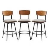 CHITA Swivel Counter Height Bar Stools with Back, Faux Leather Upholstered Barstools Set of 3, 27" Seat Height, Metal & Wood Frame, LIGHT GREY