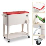Ktaxon 80 Qt Rolling Ice Chest Cooler Cart Outdoor Trolley with Storage Shelf, Bottle Opener & Cap Collector for 48 Hour Cold Drinks,Silver