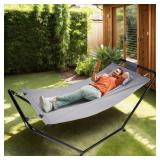 Zimtown Outdoor Hammock with Stand, Cozy Hammock Bed for Patio & Backyard, Weather-Resistant, With Pillow, Gray