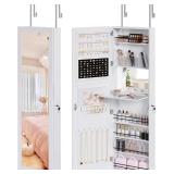 Bonnlo Jewelry Armoire Organizer with Mirror, Space-Saving 2 in 1 Wall Mounted/Door Hanging, Jewelry Cabinet with Keys, Bedroom Bathroom Cosmetics Storage Cabinet with 6 Shelves (Modern White)