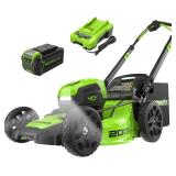 Greenworks 40V 20" Brushless Push Mower, 4.0Ah Battery (Aluminum Handles + Light)