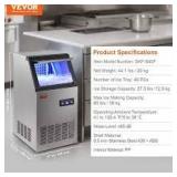 (49). Coolski Under Counter Ice Maker Machine, Stainless Steel Built-in Freestanding Ice Maker for Commercial & Home Use, 80 Lbs/Day, 30 Lbs Storage, Self Cleaning, Thicknesses Adjustable